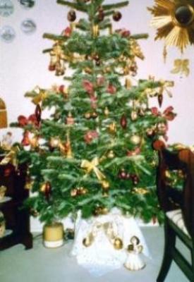 Doppekerzen, silberne, goldene und rote Kugeln,