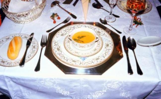 Hummercremesuppe mit Dill und Baquettbrötchen.