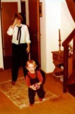 Jasmin kniend.