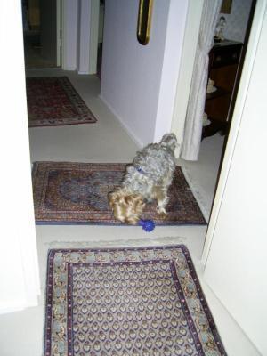 Rocky mit blauem Kunstknochen.