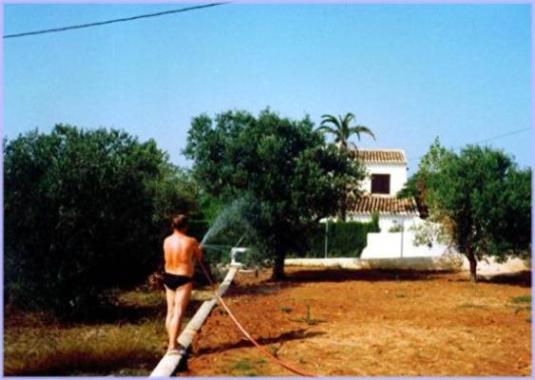 mit einem Wasserstrahl verjagt.