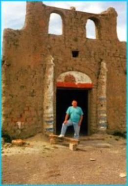 Vor der Imitation einer mexikanischen Kirche.